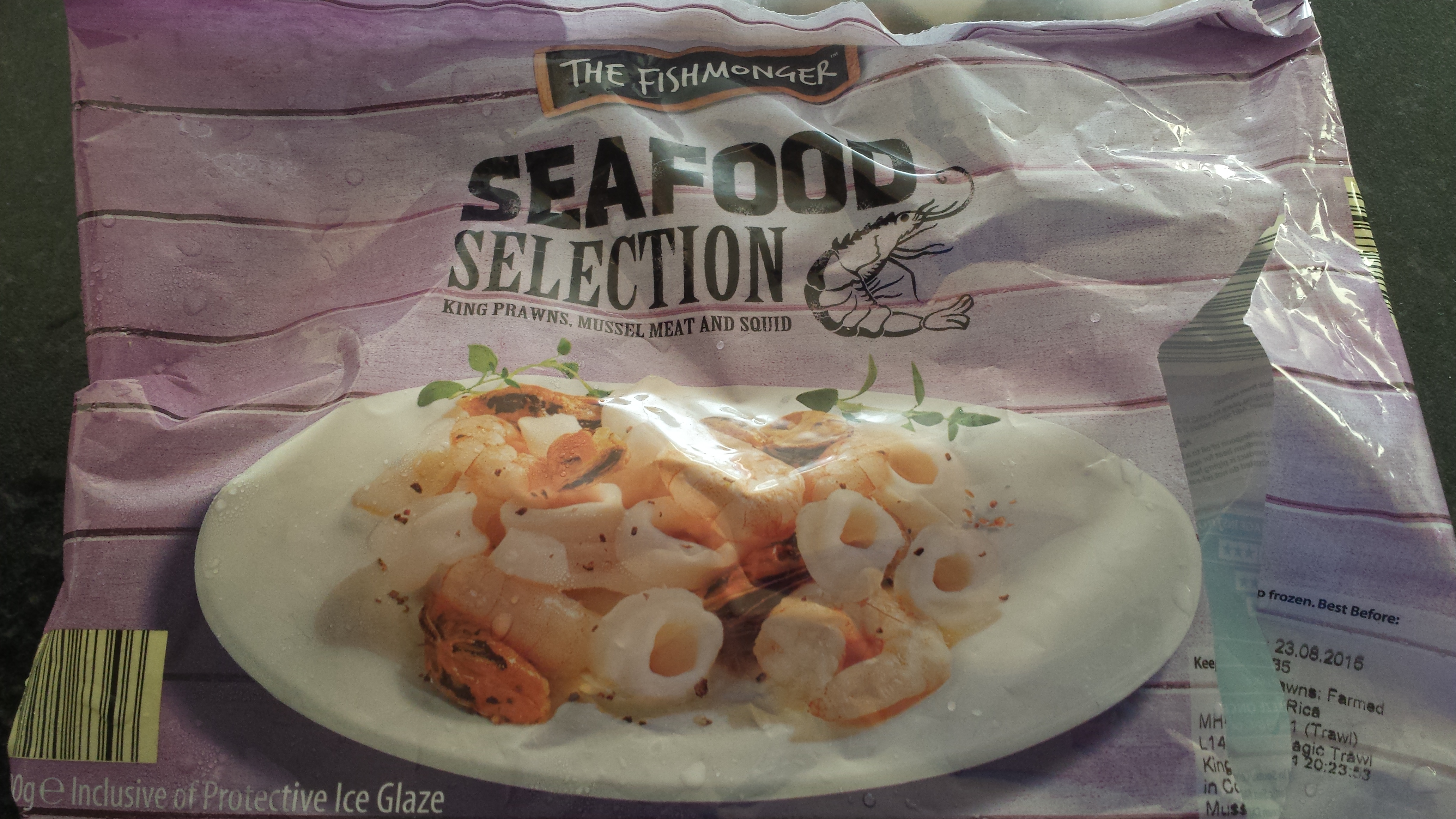 Dia desses minha amiguinha Andressa descobriu que no supermercado Aldi vende uma porção de frutos do mar por apenas €2,99. Houve alegria no meu coração naquele momento e um pouquinho de raiva dela porque não comprou uma bolsinha pra mim também. 😛 Comprou só pra ela e trouxe pra me fazer inveja…. Na bolsinha vem uma boa quantidade de camarão, sururu e anéis de lula.